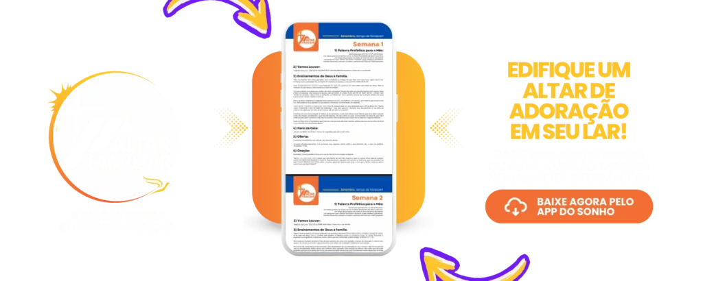 O Altar Familiar é uma estratégia que nasceu no coração de Deus para o Ministério Sonho de Deus, com o propósito de restaurar o sacerdócio familiar, a oração, a leitura da Palavra e a adoração nos lares.
